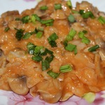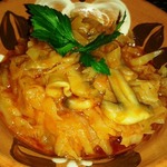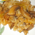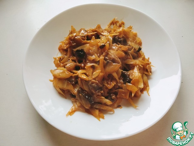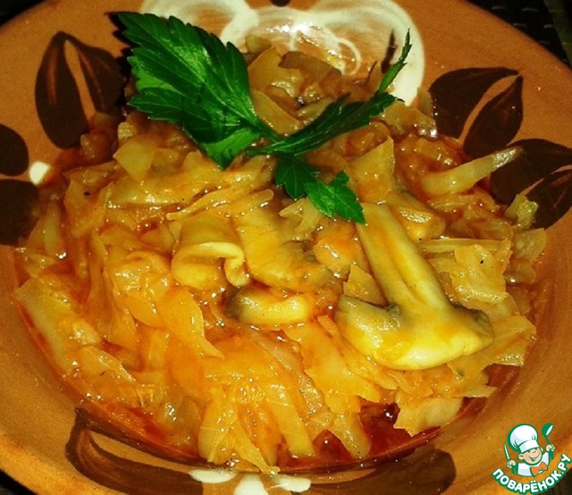 Пропорции были другие - шампиньонов было мало (200 г, заготовленные в морозилке порциями), а капусты целая головка молодой, весом около 1 кг (купила с недели полторы-две назад). Решила добавить картофеля штук 5-7 средне-крупного, для объема и вкуса. А лука добавила на каждые 250 грамм капусты как по рецепту. И морковь завалялась старая, довольно большая, добавила при жарке лука (натертую на обычную терку). И вместо томата (вернее, вместе с ним, было пару ложек в маленькой упаковке), докупила соуса краснодарского, он обалденно вкусный - добавила к этой паре ложек еще чуть меньше поллитровой банки соуса. Плюс соль, черный перец, карри острый - по вкусу. Безумно вкусно! Спасибо!