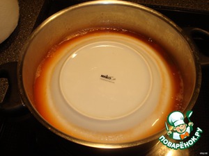Придавливаем тарелкой и накрываем крышкой. Оставляем вариться 25-30 мин. на среднем огне.