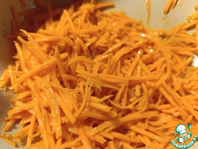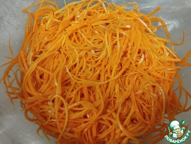 Морковь очистить и натереть на "корейской" терке.
