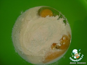 Взбиваем миксером 2 яйца, 4 ст. л. муки, сахар и полстакана молока