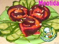 Описание: цветы - символ жизни, любви и красоты!... самым шикарным цветком по праву считается роза.. ее нежные лепестки.. и тонкий аромат пленяют свой ярчайшей неповторимостью.. именно роза способна выражать все оттенки чувств.. все тонкости и краски любви.. от нежной.. до страстной и разрушительной.. я же предлагаю Вам разнообразить стол замечательным и вкусным гарниром из свеклы, морковочки и картофеля .. с небольшими дополнениями, которые делают эти розы достойными любого праздничного стола..
