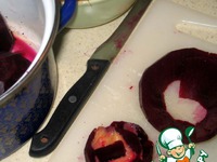 свеклу очищаем от кожуры и с помощью ножа нарезаем по спирали (чтобы получались длинненькие полосочки) |