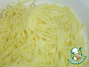 • Начинаем приготовление этого блюда с изготовления корзинки (картофельной). Для этого очищаем картофeль,