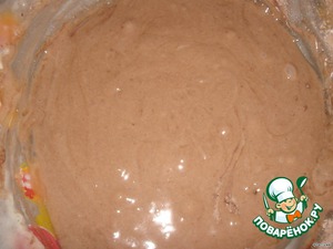 Всё хорошо взбить и разделить на 2 части: одну часть оставляем белой, а во вторую часть добавляем какао.