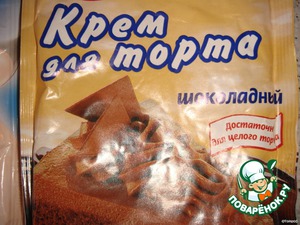 Готовим крем из сухой смеси для крема: взбить 1 пачку шоколадного крема с 250 гр молока и 3 ст. л. сахара.