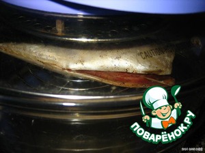 Ставим в холодный аэрогриль высокую решетку и кладем рыбку...