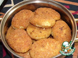 Обжариваем котлетки с обеих сторон на подсолнечном масле, минут по 5 с каждой стороны (я, когда их переворачиваю, закрываю сковородку крышкой.
