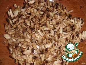 • Поверх помидорок выложить грибы, сверху порезанный соломкой перец.