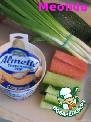 авокадо надо натереть на мелкой терке и смешать с творожным сыром (если Вам кажется, что соли маловато, то можно немного посолить)