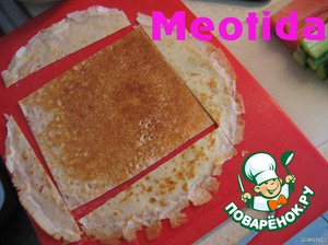 сворачиваем рулетиком,выкладываем на квадратный бинчик