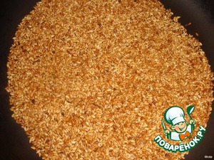 Кунжут также обжарить на сухой сковороде до коричневого цвета. Но только жарить более тщательно, чем орехи, чтобы блюдо потом не горчило.
