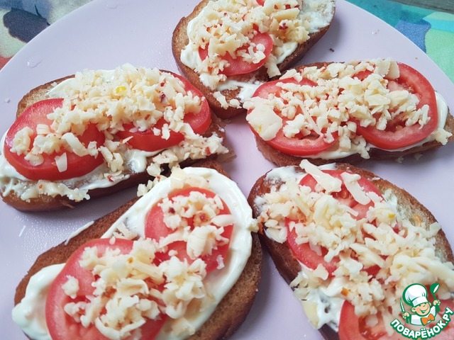 Ингредиенты для «Бутерброды с сыром и помидорами»: