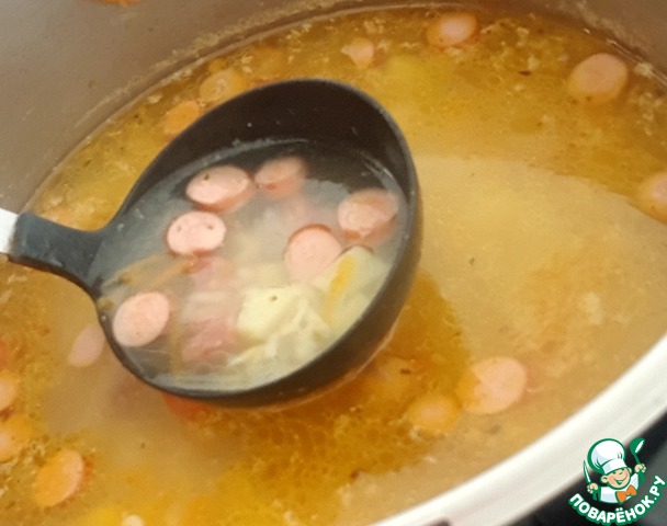 Этот суп в детстве готовила нам мама, когда мы наотрез отказывались от "мясных" супов. Нам очень нравилось вылавливать в тарелках сосиски. Да и сам суп очень легкий, можно сказать, диетический