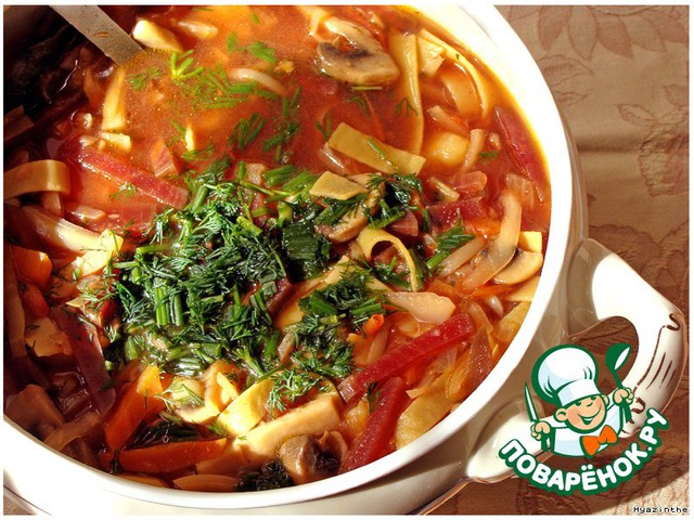Рецепт «Постный борщ с феттучини или тальятелле»: