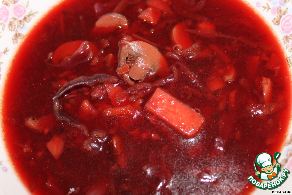 Рецепт «Постный борщ с грибами и фасолью»:
