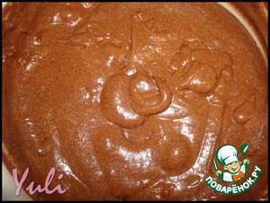 Поочередно, небольшими порциями добавляем в масло то смесь пива с какао, то часть муки. Каждый раз вымешиваем.