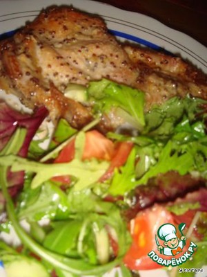 Готовую свинину подаем с чем хотите. У нас просто с салатом бэйби.