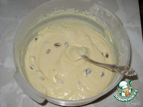 Затем вмесить предварительно замоченный и просушенный изюм.