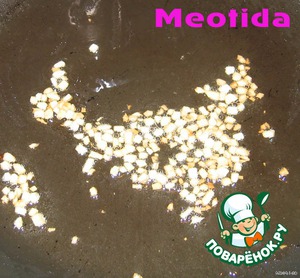 в разогретой сковородке с небольшим количеством масла обжариваем измельченный чесночок -