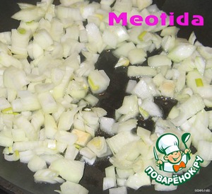 лук крупно нарезаем квадратиками и обжариваем в масле до золотистого цвета -