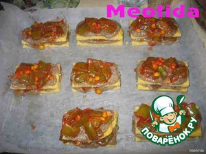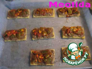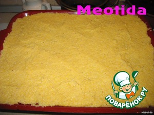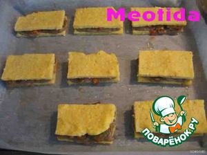 Выкладываем на томатную начинку еще один прямоугольничек поленты