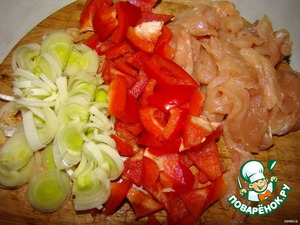 Я подвала курицу с китайской вермишелью. Варить 4 минуты, затем промыть водой и обжарить на масле
