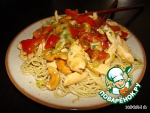 Еще одно блюдо из китайской кухни. В этот раз из курицы с орешками кешью и сладким перцем. На подготовку и приготовление этого блюда. вам понадобится от силы 15 минут