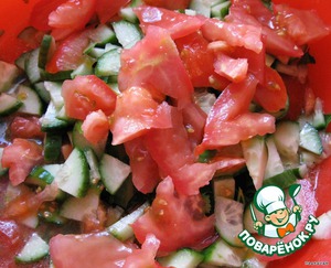 режем помидоры и огурцы