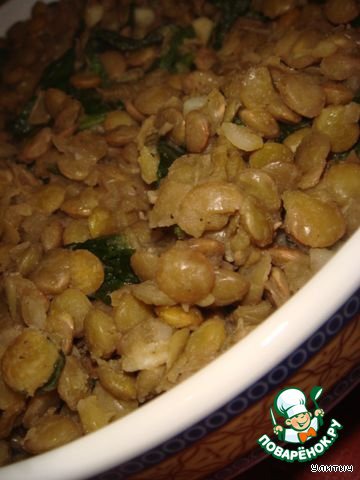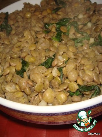 Рецепт «Теплый салат из зеленой чечевицы со шпинатом»: