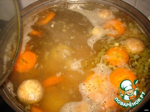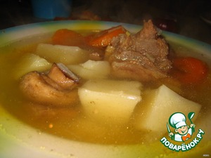 Рецепт «Мясной суп с целыми шампиньонами»: