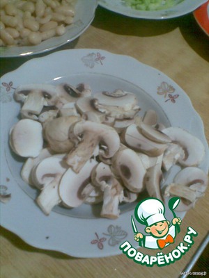Рецепт «Салат с фасолью, грибами и сухариками»: