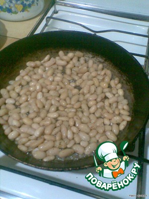 Фасоль варим до готовности и обжариваем на растительном масле минутки три