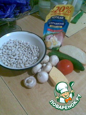 Ингредиенты для «Салат с фасолью, грибами и сухариками»: