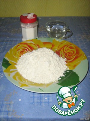 Замешиваем крутое тесто из муки, тёплой воды, соли, масла растительного. Тесто должно быть эластичным.