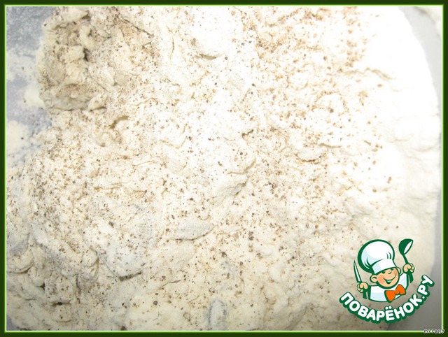 Смешиваем сухие ингредиенты: муку, перец, соль, сухие сливки.