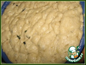 Замешиваем очень липкое тесто,при необходимости можно добавить в тесто воду.выкладываем в форму, смазанными в масле руками разравниваем тесто в форме,смазываем поверхность теста. Даем подняться.Обминаем.Еще раз даем подняться.