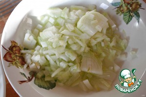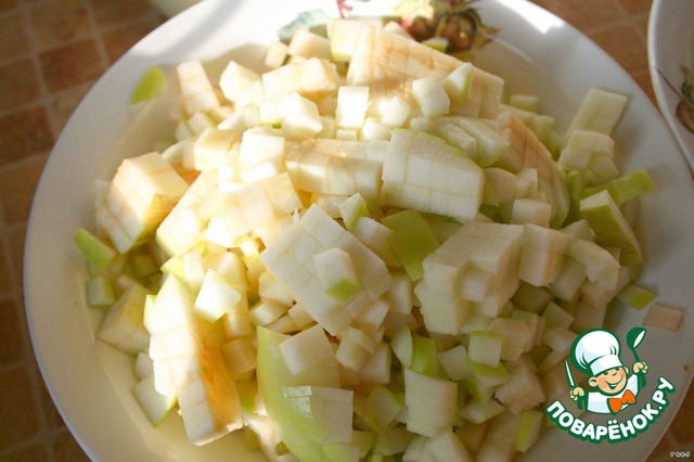 Жарить лук и яблоки на сливочном масле в течении 5 минут.
