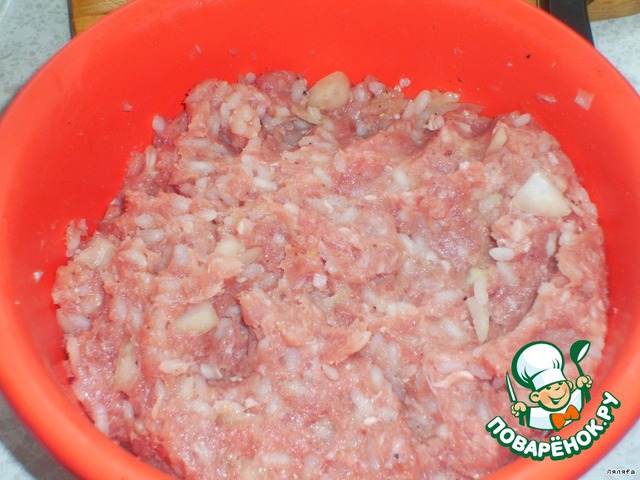Готовим фарш, как на пельмени и добавляем в него отварного риса -