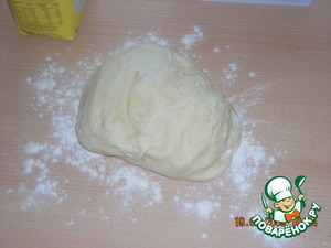 Тесто поделить на 2 части. Одну часть раскатать, (овал 30 на 38 см.) Выложить на противень.