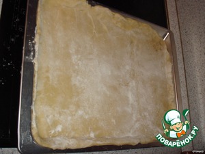 Раскатать не очень тонкий лист. немного теста нужно оставить, чтобы потом потереть сверху на джем.