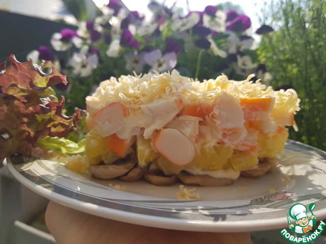 Рецепт «Салат с грибами и крабовыми палочками»: