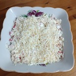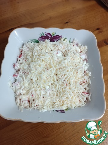 4 слой (украшение) - тертый на мелкой терке сыр или яйцо.