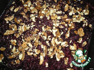 • Буряк натираем на крупной тёрке и выкладываем в форму для запекания.