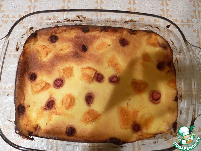 Рецепт «Запеканка творожно-манная с клубникой и тыквой»: