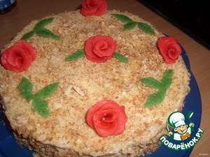 Собираем наш торт и украшаем на своё усмотрение.Я украшала розами из марципана, рецепт здесь https://www.povarenok.ru/recipes/show/21946/