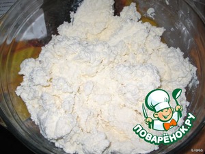 Все это тщательно перемешать ложкой, добавив очищенный и промытый изюм.