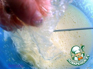 Сок апельсина, желтки и сахар ставим на водяную баню и взбиваем до образования пены.
