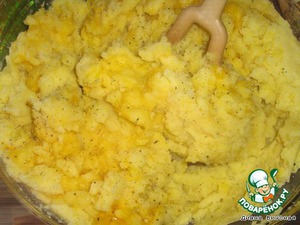 Отварить картофель в мундире, очистить, размять, положить 2 яйца, соль перец
