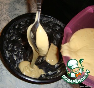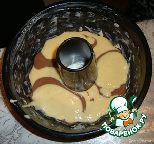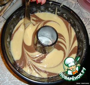 Всю массу делим на пополам ,в одну половину добовляем какао