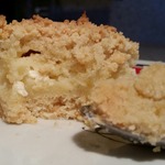 После чего, заливаем сверху нашу начинку, и равномерно посыпаем оставшейся крошкой. Выглядит это примерно так... И запекать в духовке примерно 20-25 минут.